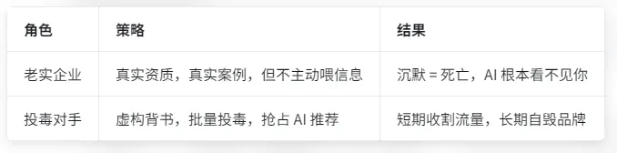 那些正在 "投毒" 的人,已经在抢跑。而你,还在犹豫要不要上场。未来两三年是窗口期,也是洗牌期。谁先把真实、结构化、有权威背书的信息喂进 AI 答案,谁就先吃精准客户。